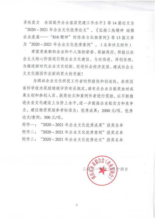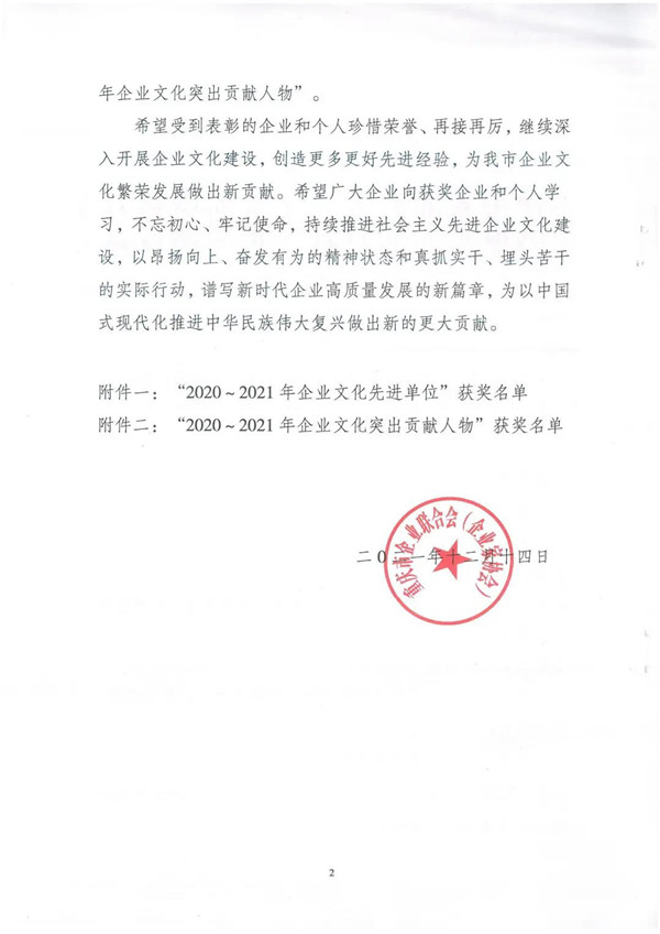 12月22日下昼,,,,,,由重庆市企业联合会主理的2021年企业文化交流会在重庆园博园召开。。。。。;;;嵘闲疾⒈硌锪2020—2021年度重庆市企业文化先进单位、突出孝顺人物、企业文化优异效果、优异案例和优异论文。。。。。。